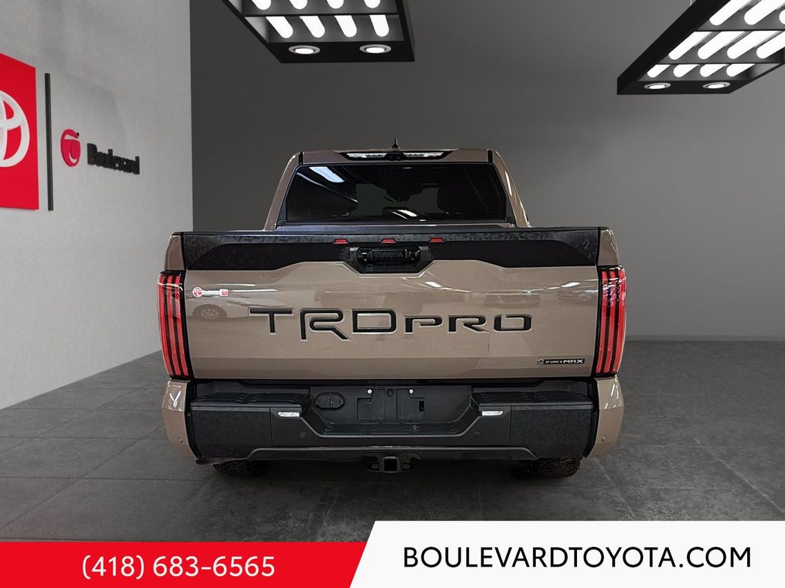 NOUVEAU PRIX !! Prenez le volant de cette robuste et élégante Toyota Tundra TRD Pro Hybride 2025! Cette beauté brune, avec un intérieur noir, accueille jusqu'à 5 passagers, elle est dotée d'un moteur hybride bi-turbo et d'une boîte automatique. Découvrez la puissance d'un pickup 4WD, animé par un moteur de 3.4 litres à 6 cylindres. Précédemment appréciée en privé, elle est équipée d'un toit panoramique, d'une sellerie en cuir. Simplement la voie de la confiance!